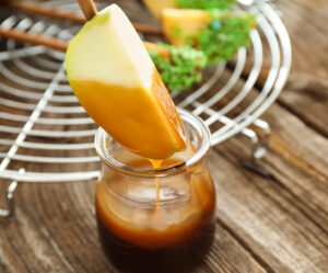 | Caramel Apple slices:2 medium applesToothpicksCaramel sauceSea salt | Slice the apples ½-inch thick by 1-inch long and place on serving plate. Poke each apple slice with a toothpick. Warm caramel and drizzle over apples. Sprinkle sparingly with sea salt. |